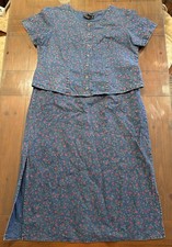 Requirements 2 Piece Set Skirt and Blouse Y2K Denim Look Medium Vtg Floral Linen