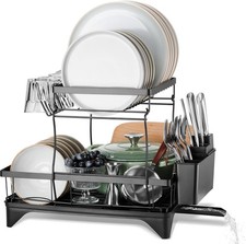 • Easy Drainage System – Allows water to drain away from dishes efficiently. • Type: Kitchen Dish Drying Rack / Dish Drainer Organizer. Its sturdy two-layer structure and sleek black finish make it both practical and stylish for any kitchen counter.