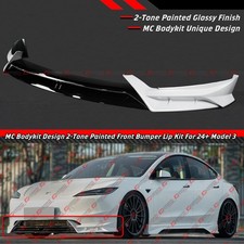 Compatibility: 2024 - 2026 Tesla Model 3 ( Do Not Fit Performance Bumper ) *** Please check the compatibility list for a detailed fitment list *** Package includes: 1 x 3 Piece Front Body Kit Bumper Lip INSTALLATION INSTRUCTION IS NOT INCLUDED Features: .