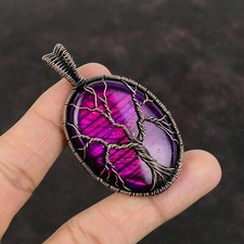 Pink Fire Labradorite Wire Wrapped Tree Of Life Handcrafted Copper Unique 2.56"