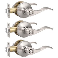 Knobonly 3 Pack Privacy Door Knobs Satin Nickel, Keyless for Bed/Bath, Round SS