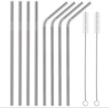 US 8pcs 10.5" Stainless Steel Ultra Long Metal Cocktail Straw + 2 Cleaner Brush | ✔ Check At Store | $4.00 |