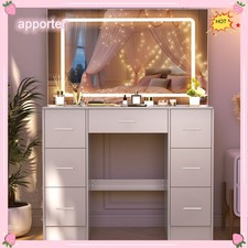 10 LED Lights w/3 Colors Mirror &Drawer Dresser Table Makeup Desk for Xams gifts