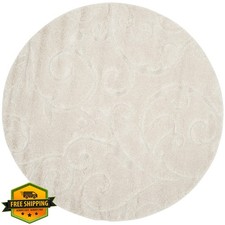 Plush Round Shag Area Rug White Faux Fur Sheepskin Shabby Chic All Sizes