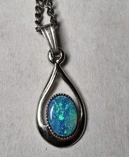 Blue Opal And Silvertone Teardrop Pendant Necklace Dainty | ✔ Check At Store | $20.00 |