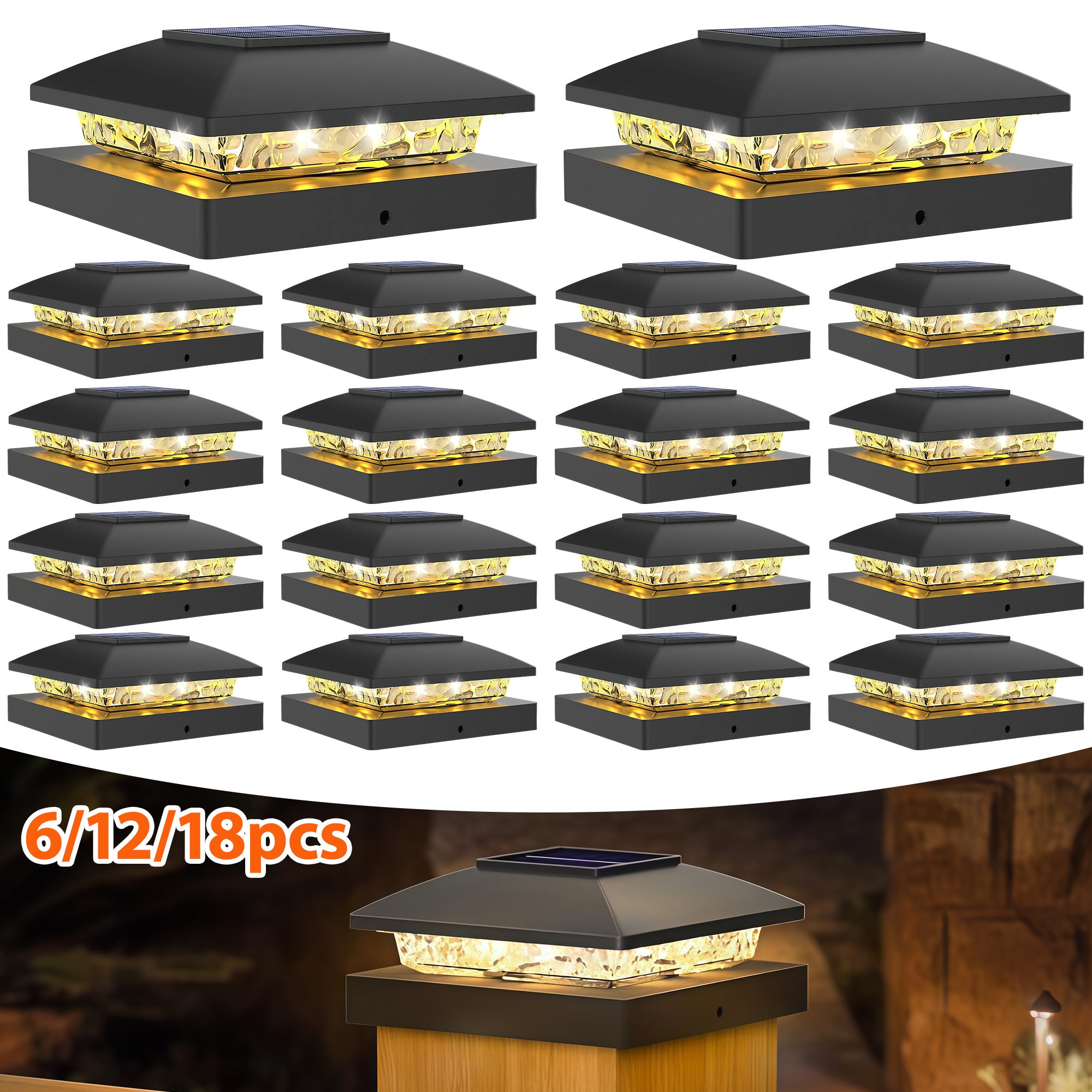 First, the 8pcs LEDs refract more ambient light through the upgraded lens, much brighter than other solar lights. Power Source: Solar Powered. Waterproof: IP64. LED Quantity: 8LED. Color Temperature: 3000K ± 500K.