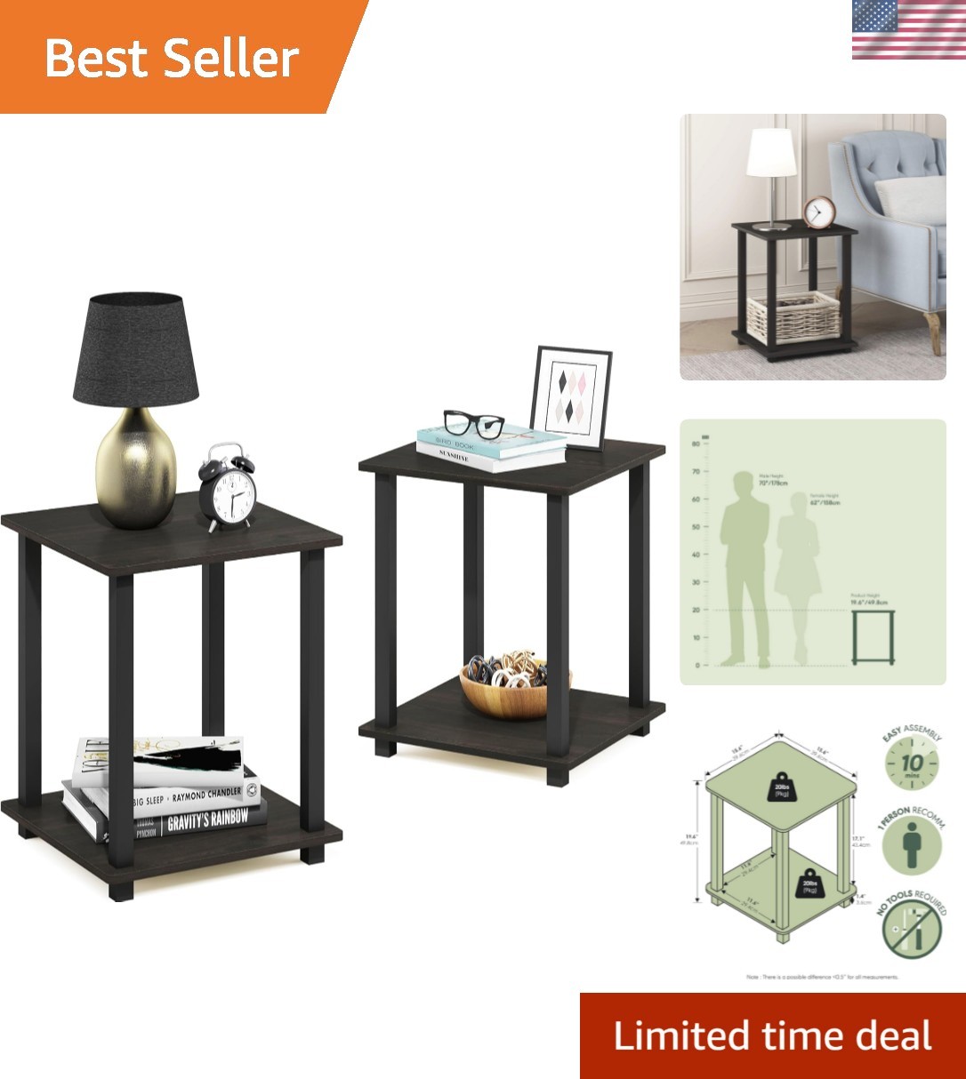 SIMPLISTIC Side Table Set of 2, 2-Tier Square Modern End Table, Nightstand, Night Stand, Bedside Table, Toolless Assembly, for Living Room, Bedroom, Espresso. Sold in Set of two; fits in Y our space, fits on your budget.Assembly Required.Material:Engineered " L x " W x " H.