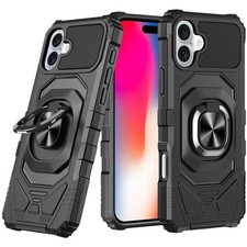 For iPhone 16 6.1inch Case Dual Layer Magnetic Ring Stand Cover + Tempered Glass | ✔ Check At Store | $9.89 |