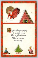Christmas Joy And Merriment Sant Chimney Tree Kids Embossed DB Postcard | ✔ Check At Store | $8.99 |