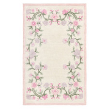 The subtle, botanical border adds a graceful charm without overpowering your space—making it an ideal choice for cozy, light-filled rooms. Perfect for use in your bedroom, living room, reading nook, or hallway, this rug blends comfort with artistry.
