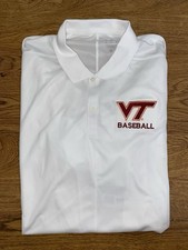 The product is a new with tags Virginia Tech Hokies Nike baseball jersey in men's size XL. This officially licensed fan apparel represents the Virginia Tech Hokies baseball team and is designed by Nike, a reputable sports brand. Ideal for any Virginia Tech fan or baseball enthusiast, this jersey allows you to show your support for the team in style.