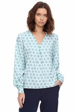 Pale-turquoise blouse in floral print. Round neck cutout is decorated with steels, ahead of the counter fold, a spacious cut. Free, lush, long sleeve with cuff. Length approx. More than 1000 fashion of clothes in our factory.