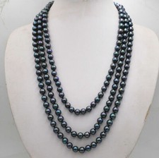 8mm Genuine Peacock Black South Sea Freshwater Shell Pearl Long Necklace 80'' AA