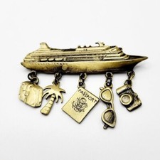 Cruise Ship Travel Vacation Tropical Brass Tone Large Brooch | ✔ Check At Store | $13.00 |