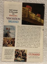 1959 & 1961 Cunard Cruise Magazine Ads, 🚢 sail away to europe, vacation island | ✔ Check At Store | $15.75 |