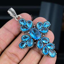 Swiss Blue Topaz Gemstone Handmade 925 Sterling Silver Jewelry Pendant 2.30"