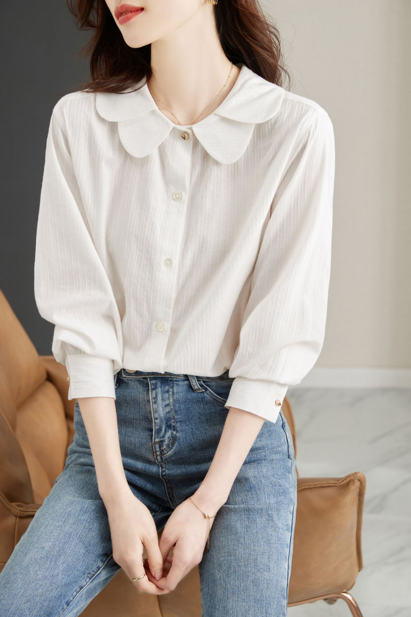 Main fabric composition: polyester (polyester fiber). Collar type: doll collar. Sleeve length:long sleeve. Product Category:Shirt. Sleeve type: regular sleeves. Style: commuter style. Fit: straight type.