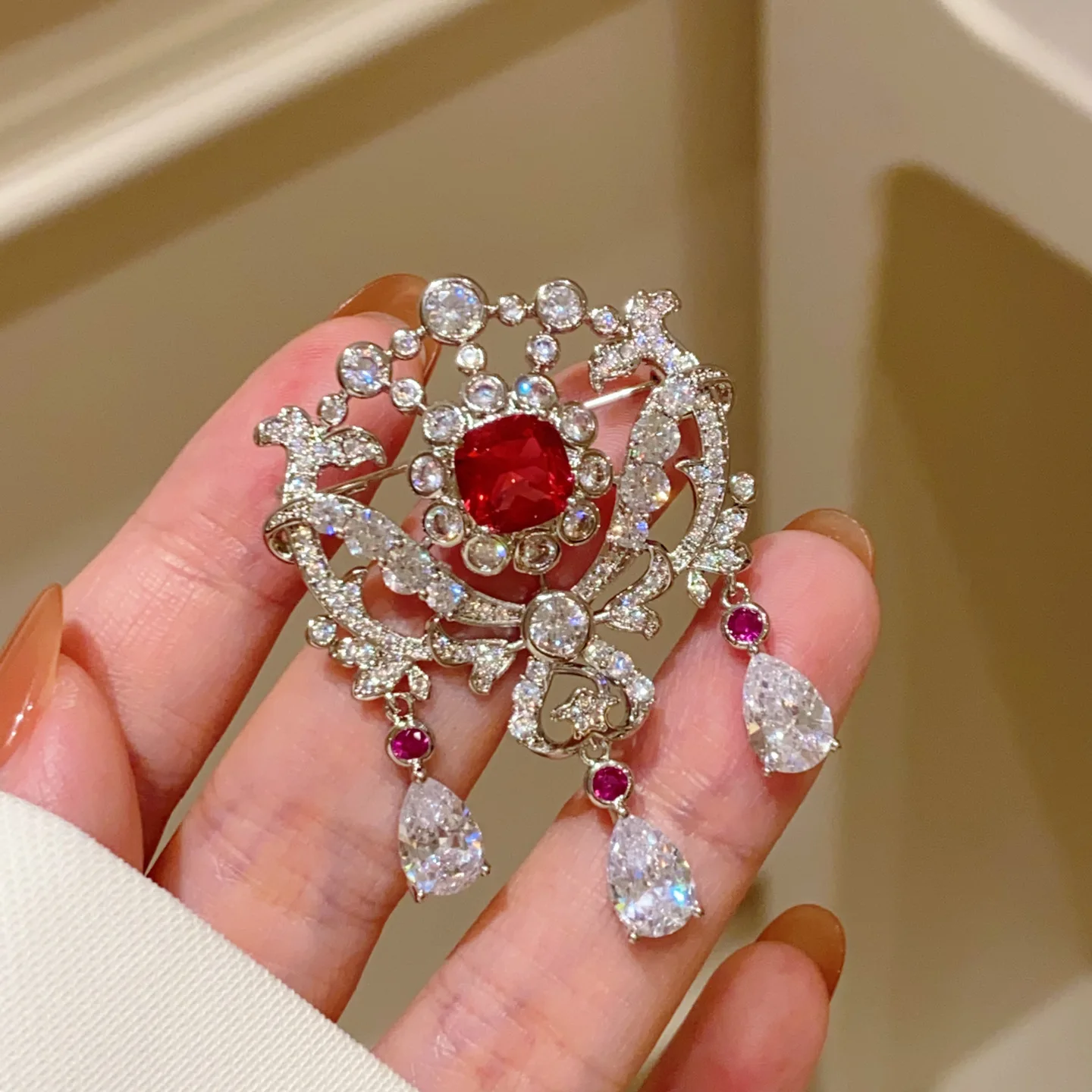 1Pc Luxury Bow Pendant, Women's Versatile Daily Wedding Christmas Shining Flower Gift Accessory