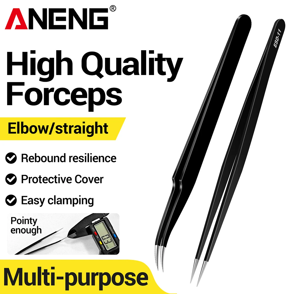 ANENG Soldering Kit Tweezers Stainless Steel Straight headed/Bend ESD Tweezer for PCB SMD Craft Hand DIY Electronics Repair Tool