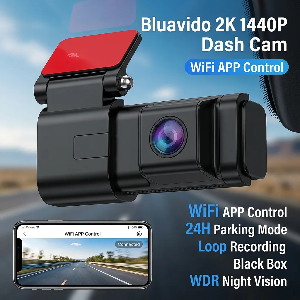 Bluavido 2K 1440P Dash Cam WiFi APP Control Support 24H Parking Mode Loop Recording Black Box WDR Night Vision Car Road Camera