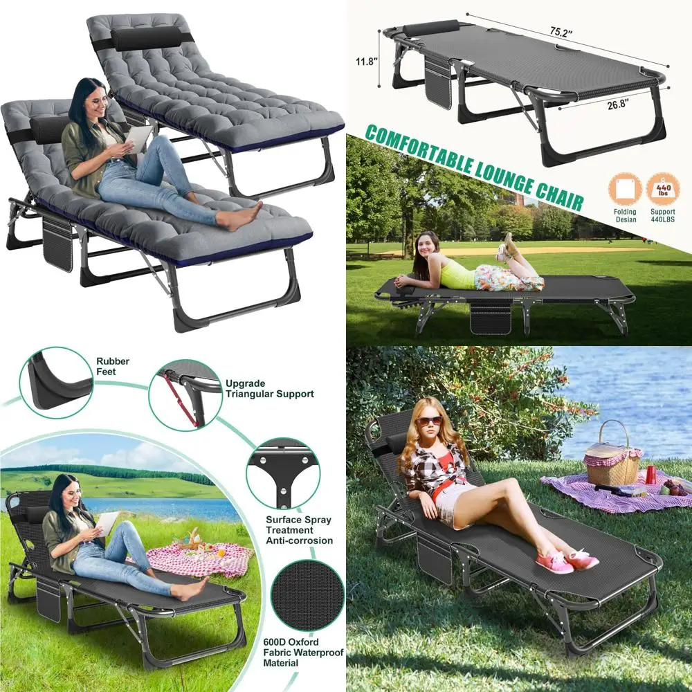 5-Position Adjustable Outdoor Folding Chaise Lounge Chair with Mattress, Reclining Patio Furniture for Ultimate Relaxation