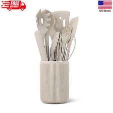 Specialty Tools: Pasta Server, Deep Ladle, Flexible Spatula. Organization: Matching Taupe Utensil Holder. Color: Taupe (Neutral Gray-Brown). "Cook in Style. Protect Your Pans.". This entire set is top-rack dishwasher safe for a quick and easy cleanup.