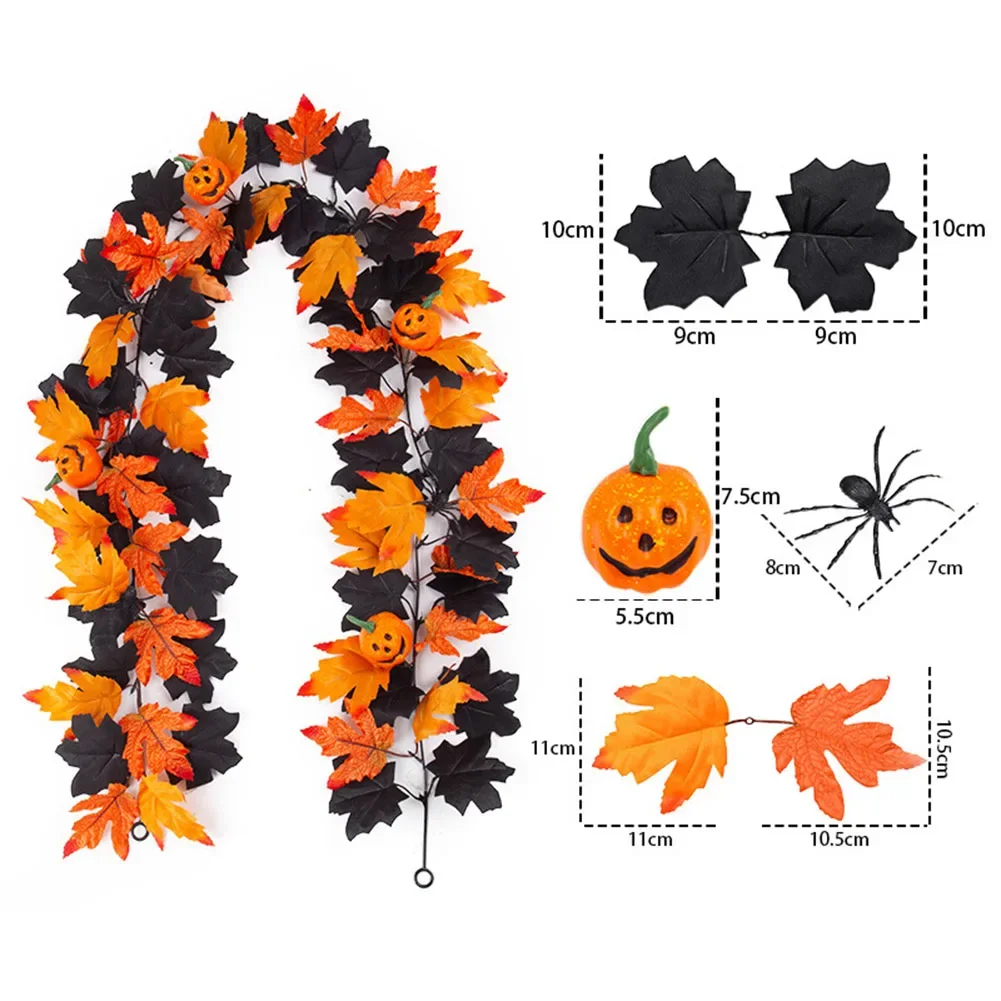 Halloween Artificial Vines Red Black Autumn Maple Leaves Fake Garland For Home Christmas Thanksgiving Party Fireplace Fall Decor