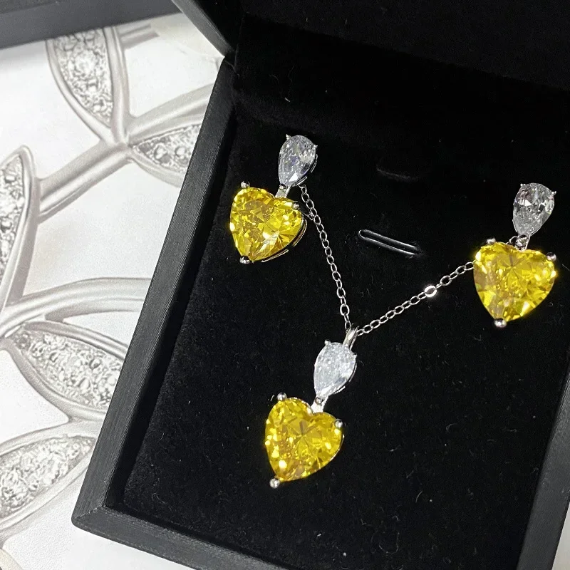 MDL Moissanite Styl.Elegant Love Rose Pink Necklace Women's Set Plated 18k Light Luxury Niche Temperament Simple Earrings