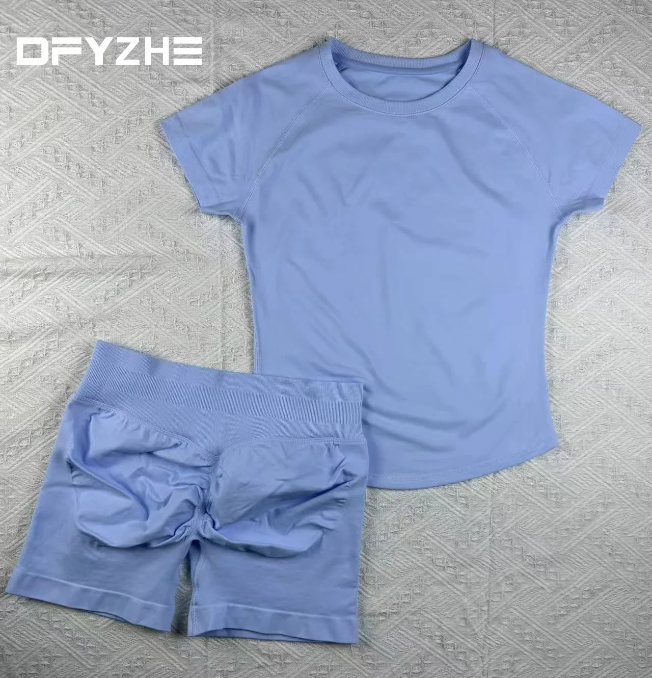 2026 New DFYZHE Running Sports Set Short Sleeve Seamless Yoga Top T-shirt Fitness Set Summer 2-piece Set