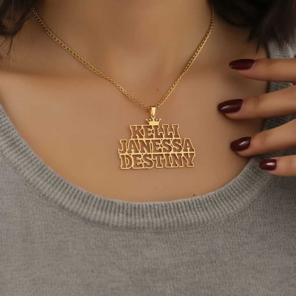 Personalized Stainless Steel Name Necklace with Crown Hollow Custom Name Pendant 3mm Cuban Chain Birthday Gift for Men & Women