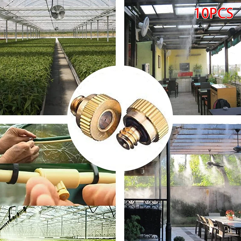 10PCS Threaded Brass Misting Nozzle 0.2/0.3mm Orifice Water Mister Parts Fog Nozzle For Patio Misting System Outdoor Cooling