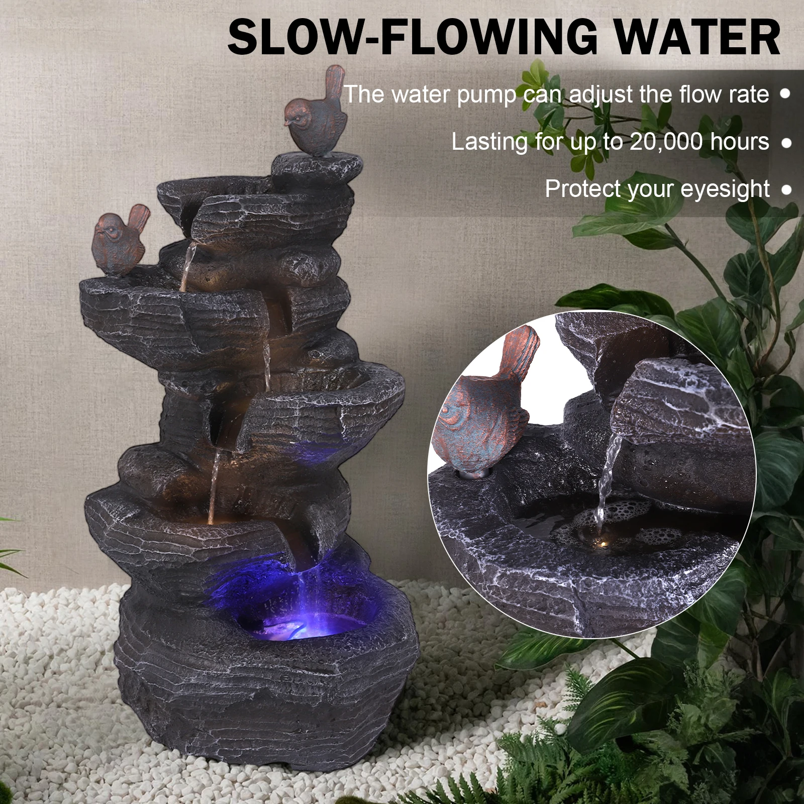 Glacial Rock Zen Rustic Outdoor Floor Water Fountain 30" High with LED Light Tiered Cascading for Garden Patio Backyard Deck Hom