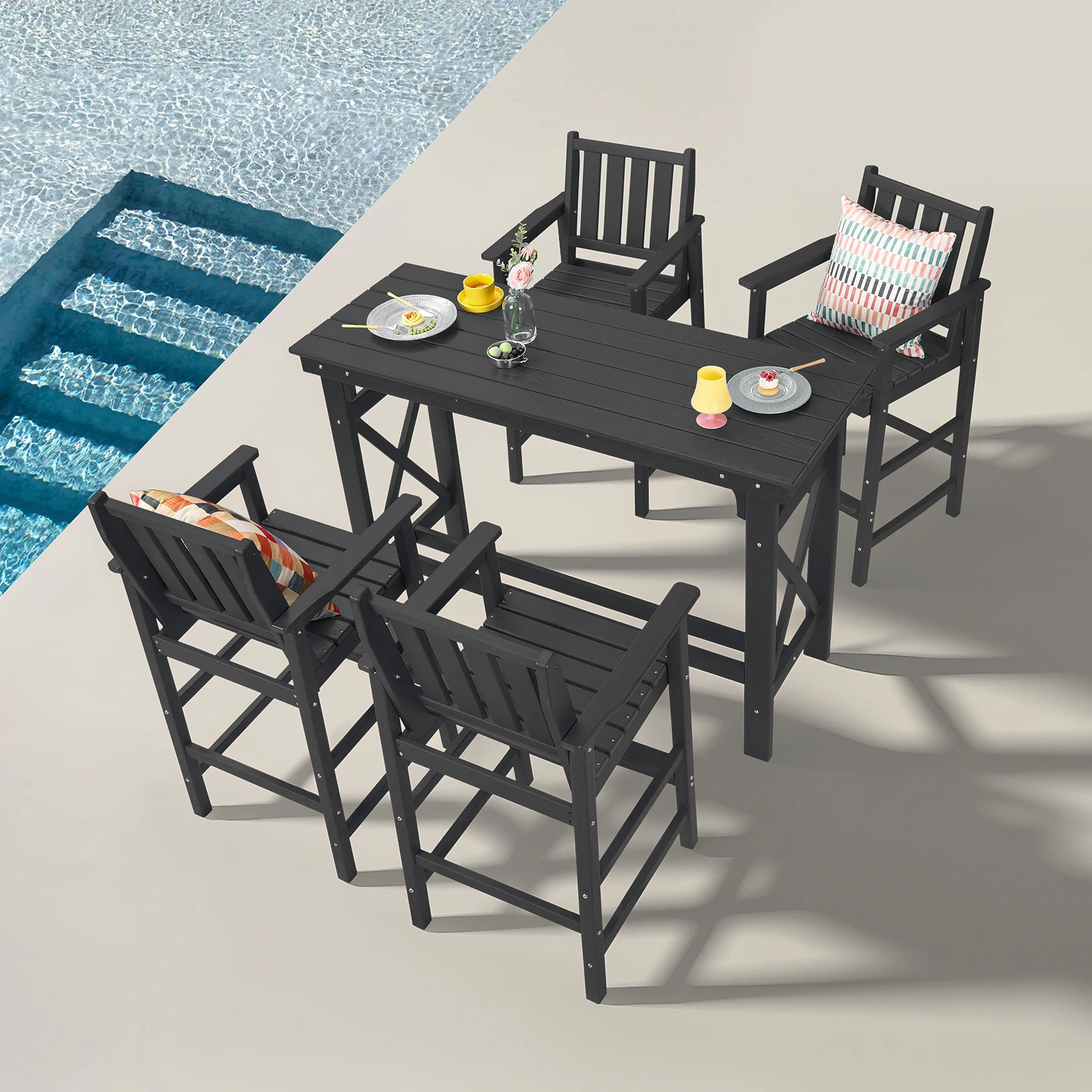 SeeHill Obsidian 5-Piece Patio Bar Set, Rectangular Table & 4 Adirondack Chairs, HDPE Outdoor Bar Set for Pool, Porch
