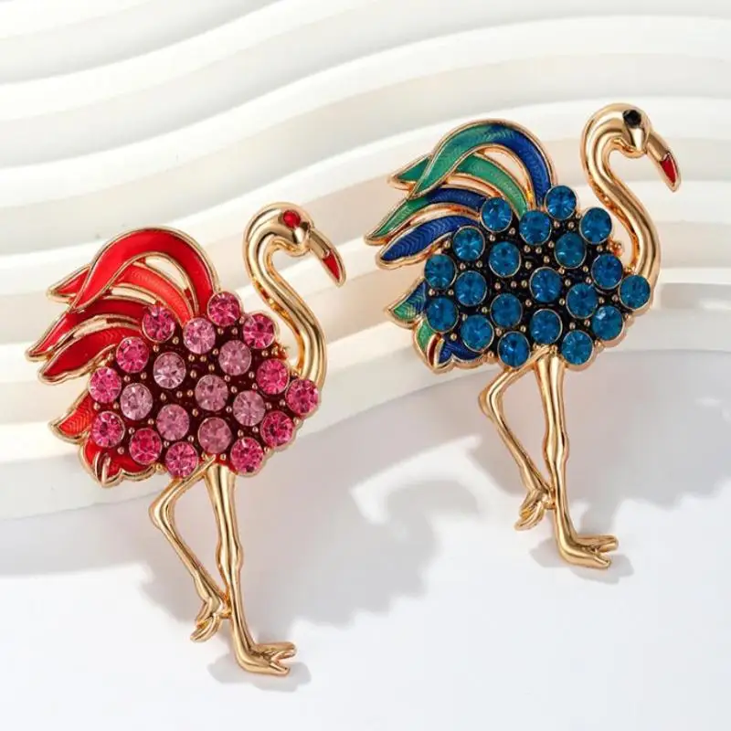 Fashion Temperament Animal Crystal Flamingo Brooch For Women Clothing Coat Accessries Gifts