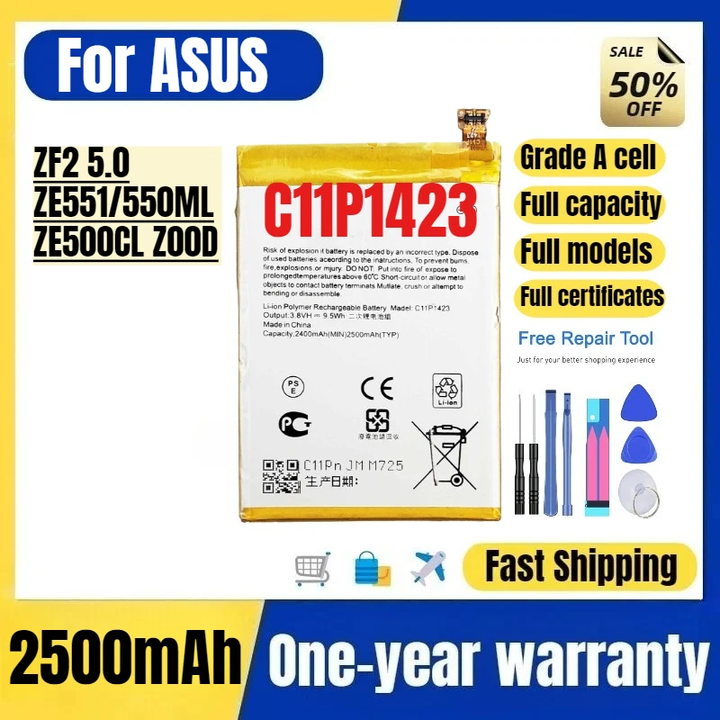 C11P1423 for ASUS for ZF2 5.0/ZE551/550ML/ZE500CL Z00D Phone Battery High Quality High Capacity Replacement Bateria Grade A Cell