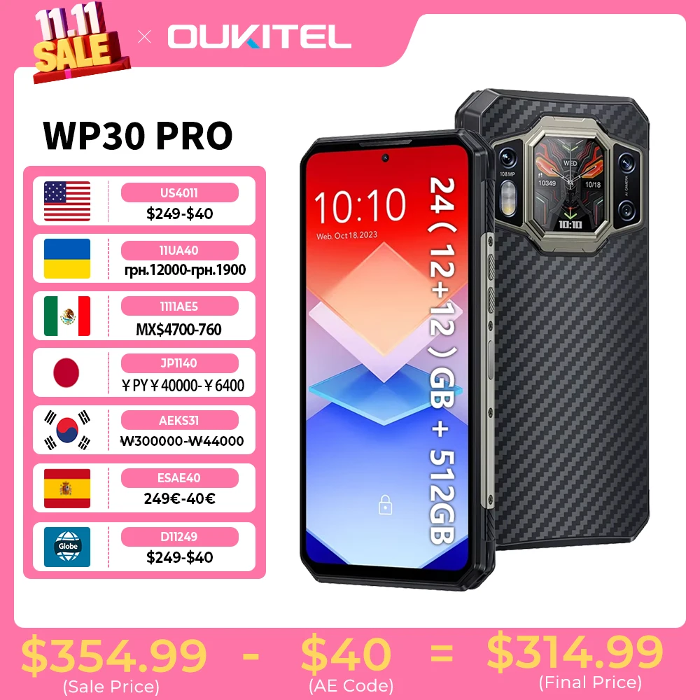 OUKITEL WP30 Pro 5G Rugged Smartphone Android 13 Mobile Phone 24GB(12+12) + 512GB, Dual Display Cellphones, 11000 mAh 120W