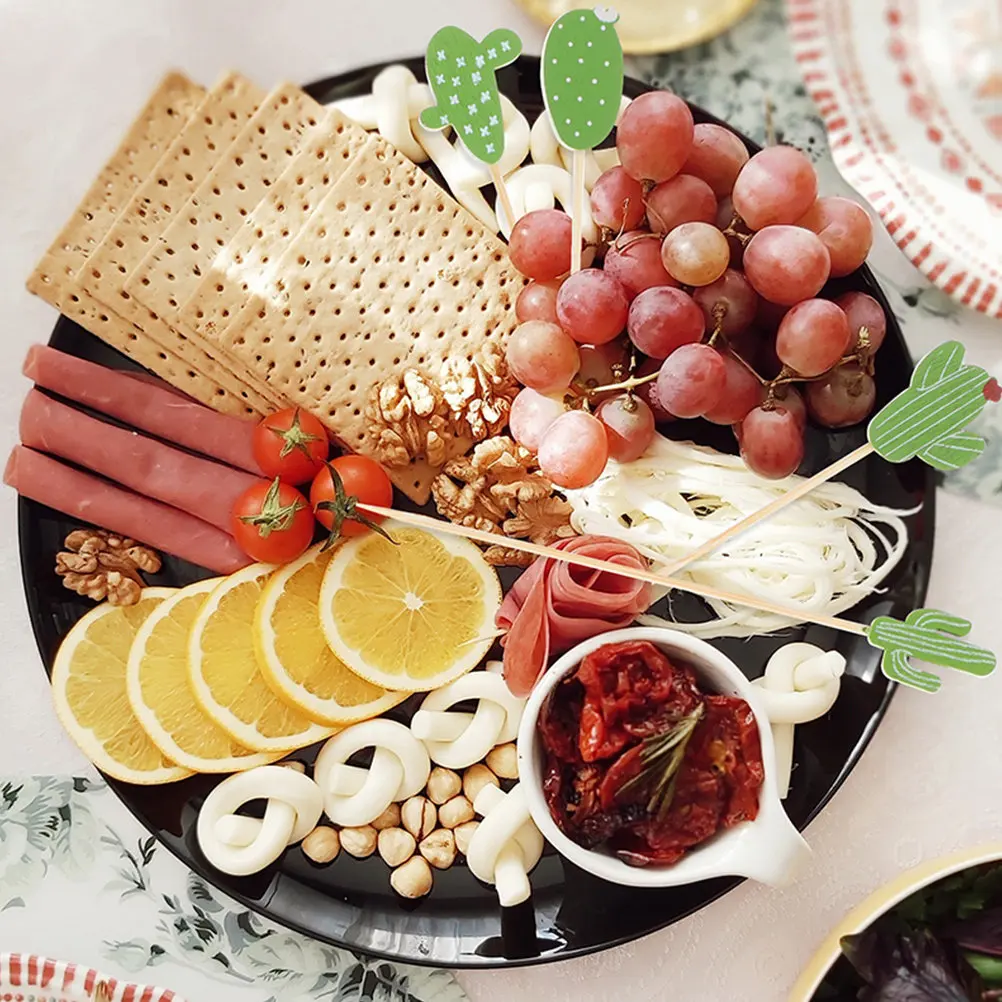2Packs Cactus Dessert Picks Bamboo Fruit Sticks Party Cocktail Skewers Decorative Food Picks for Appetizers Cakes Sandwiches