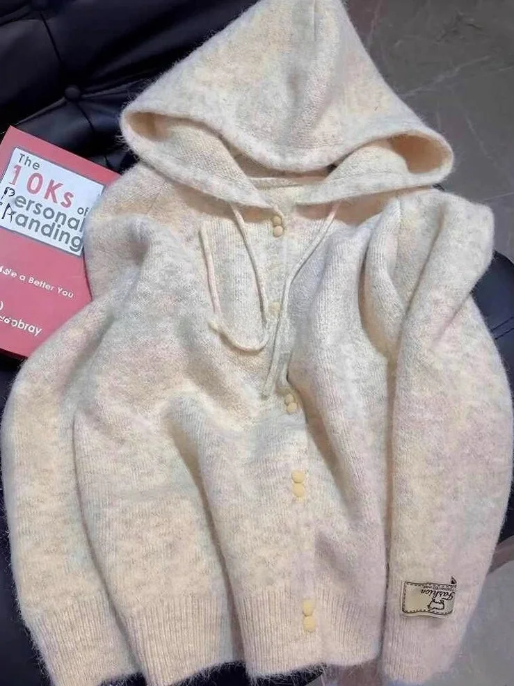 Soft Cozy Trendy Women's Knitted Hat Sweater Autumn Winter Loose Fashionable Personality Hoodie Knitwear Casual Commute Style