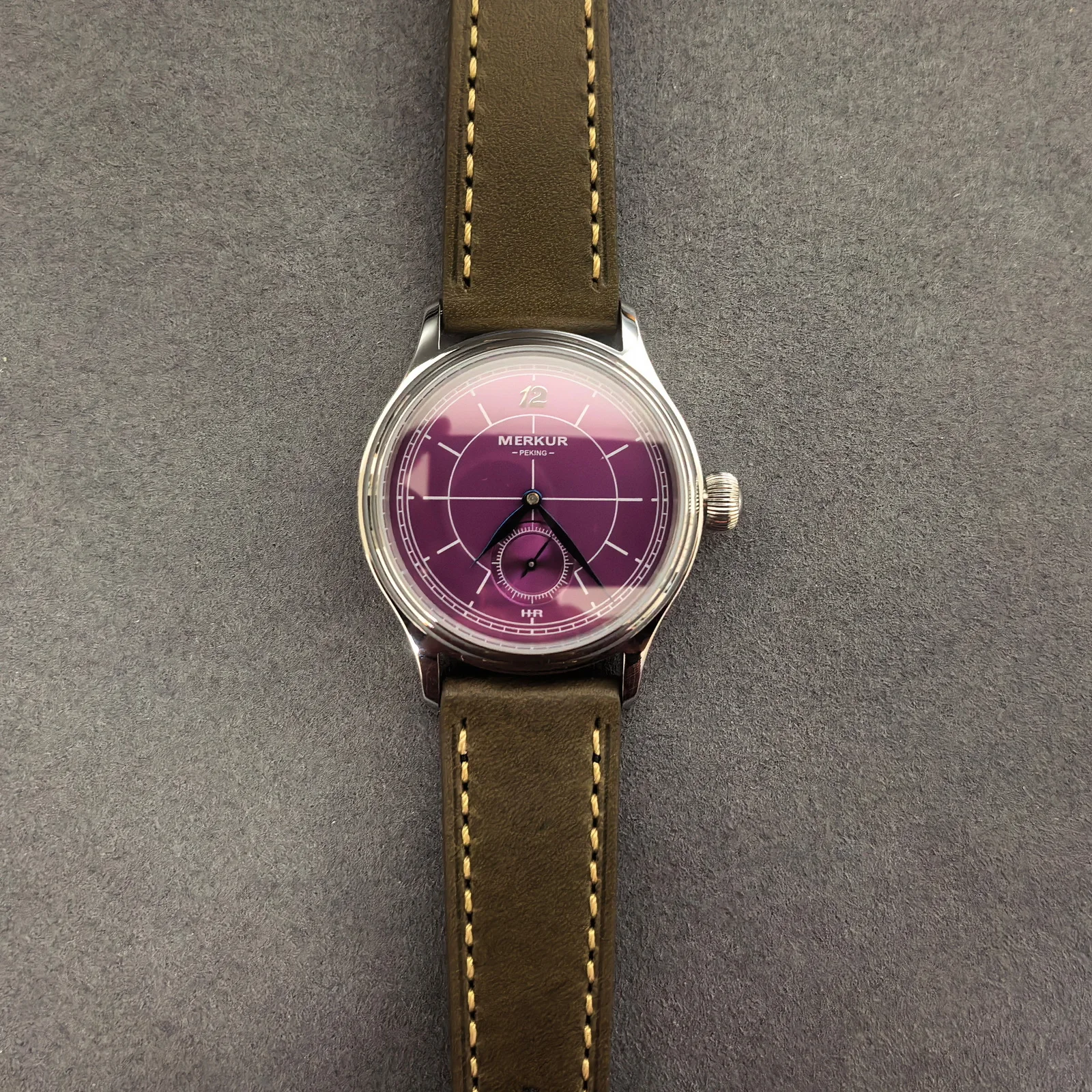 PIERRE PAULIN Men Pilot Watch 38mm Manual Winding Mechanical Wristwatch K1 Mirror M01D Quick Release Strap Purple Crossline Dial