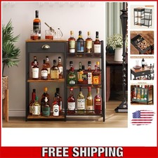 Large Capacity: This 3-tier freestanding floor wine rack holds multiple bottles of wine, whiskey, and other spirits while maintaining a space-saving footprint. Multi-Function Liquor Cabinet. Hidden Fabric Drawer: Discreet woven fabric drawer for storing ba...