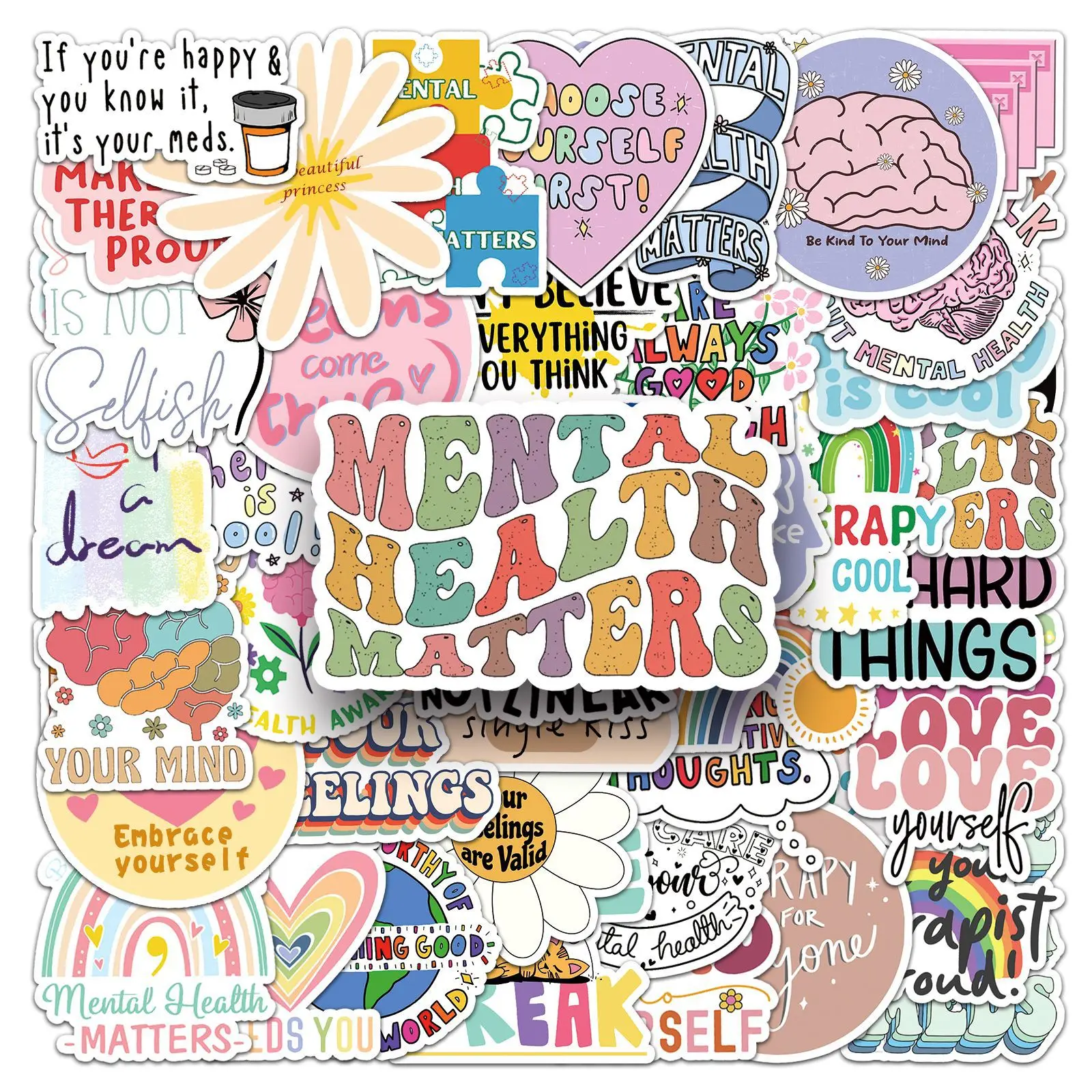 50 Psychological Health Graffiti Happy Confidence Stickers Slogans Decorative DIY Computer Laptop Luggage Kawaii Cartoon Sticker