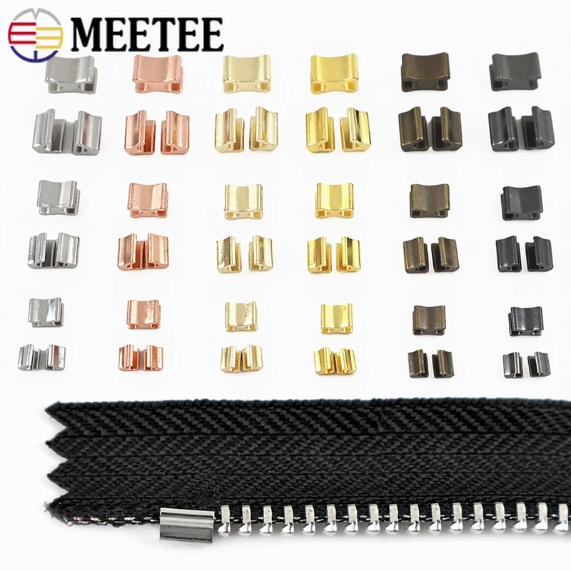 30/50sets 3# 5# 8# 10# Metal Zip Stopper for Clothes DIY Crafts Non-slip Zips Lock Bag Zipper Repair Kit Accessories Tailor Tool