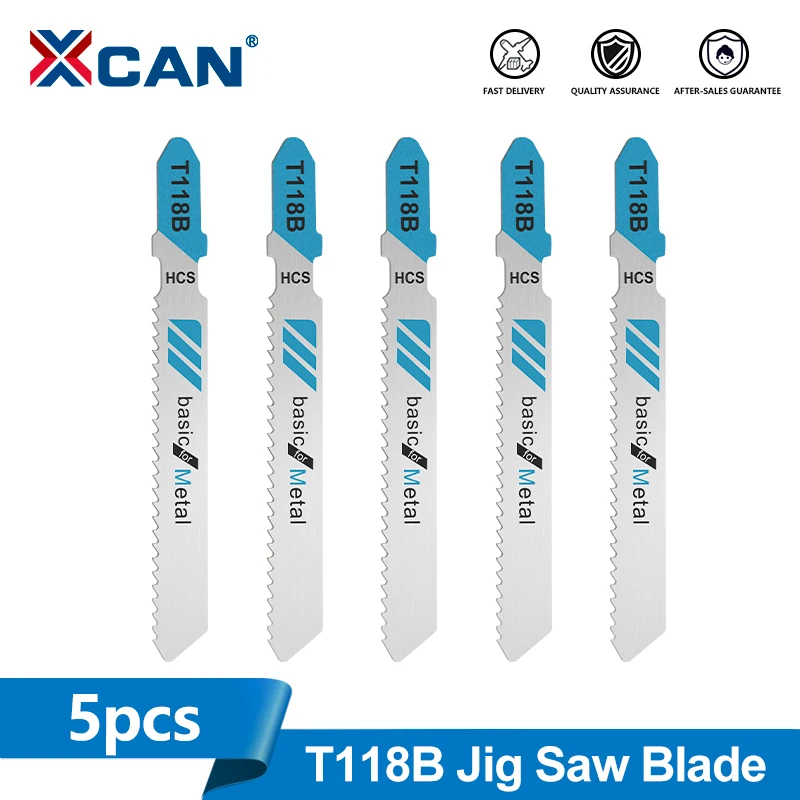 XCAN 5pcs HCS Jigsaw Blades T118B 76mm High Carbon Steel Jig Saw Blades T-Shank for Wood Cutting Tools