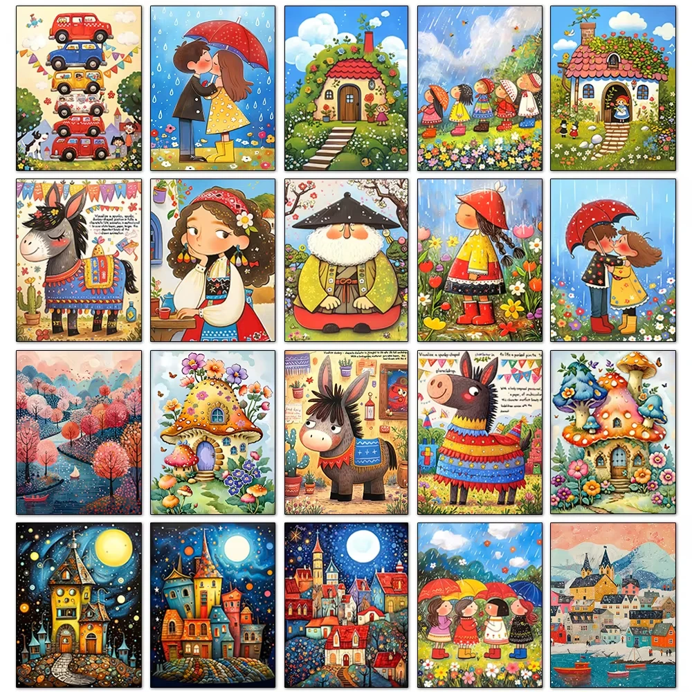 Cartoon Art Diamond Painting Girl New Series Fairy Tale Houses Full Diamond Mosaic Embroidery Set Home Wall Decoration Gift