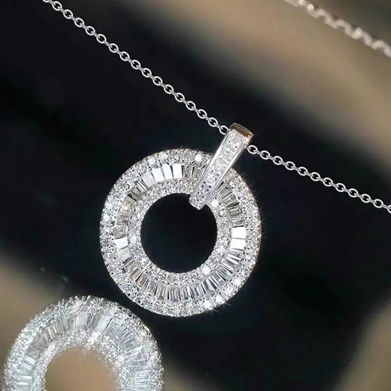 Huitan Circle Lady Pendant Necklace Inlaid Bright CZ Luxury Wedding Engagement Daily Jewelry Graceful Trendy Party Accessories