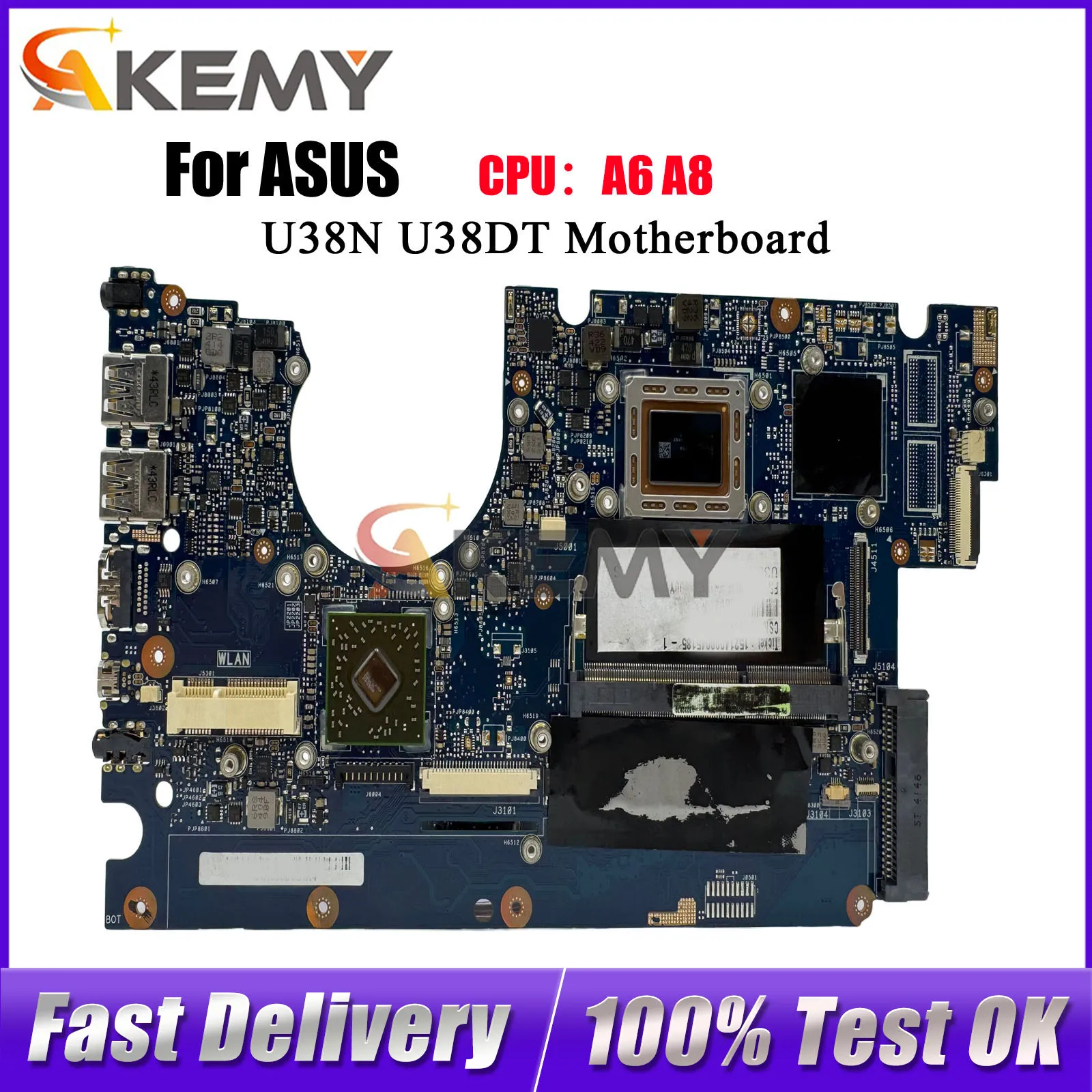 U38DT Laptop Motherboard For ASUS ZenBook U38N U38DT Notebook Mainboard With A6 A8 CPU 100% tests OK fast shipping High quality
