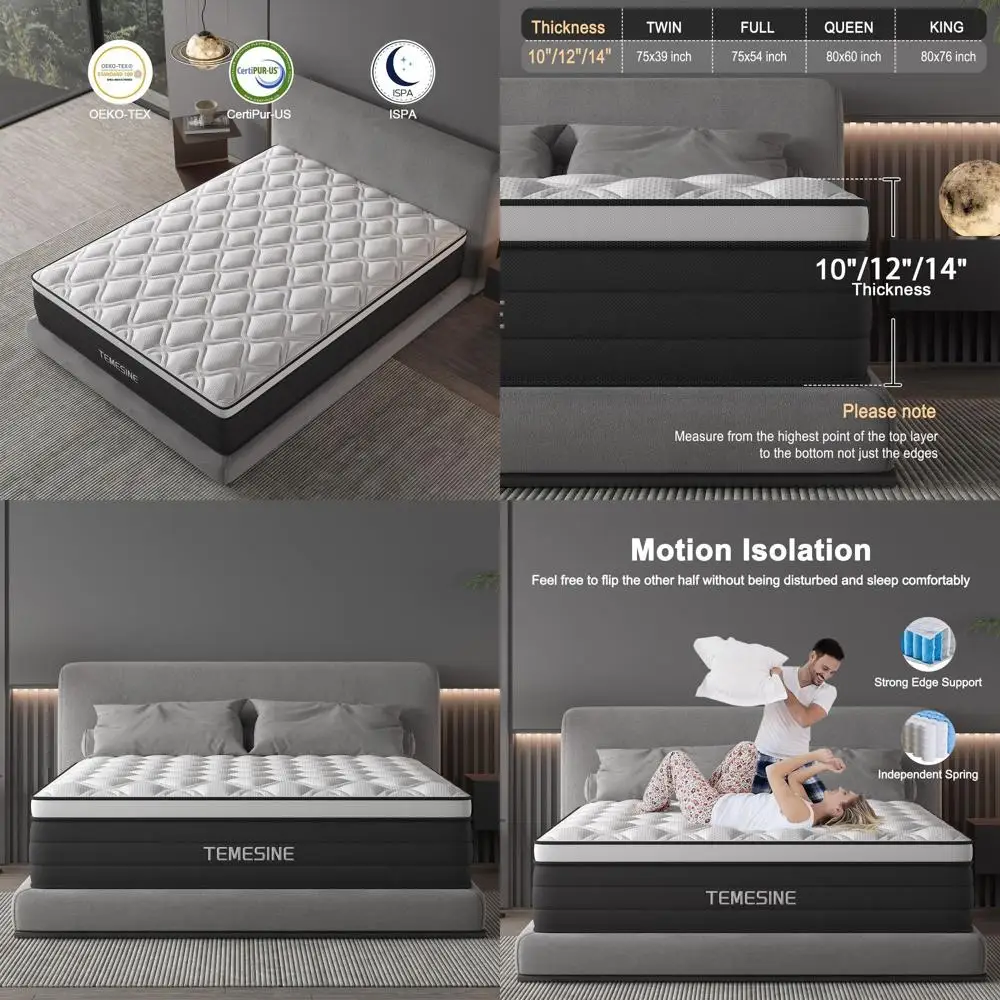 【Stay Cool, Sleep Naturally】:The queen mattress is comfortable, breathable, and natural. The mattress’s independent pocket spring system and egg crate designed foam layer enhances air circulation, preventing trapped heat for a cool and comfortable sleep....